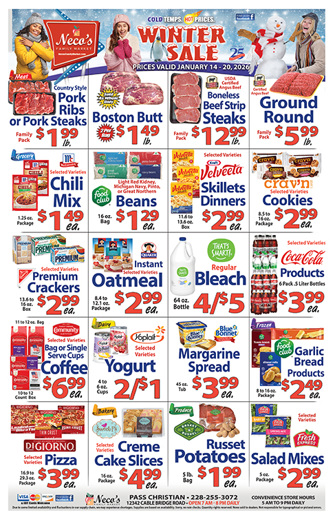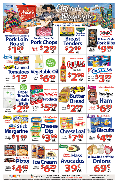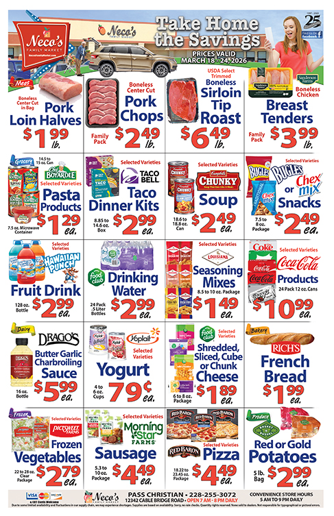 Stay connected with Neco's Family Market for the latest ads, special offers, community news, contests and more!